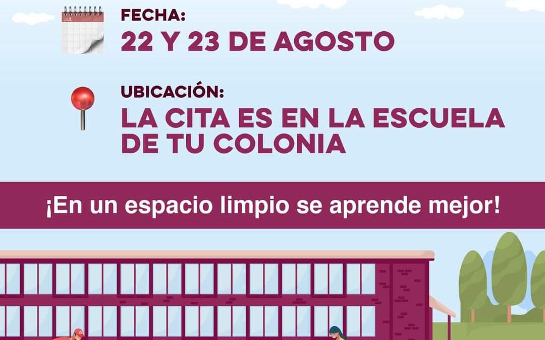 La dependencia educativa estatal convoca a jefes de sector, supervisores escolares, directivos, docentes, madres y padres de familia, tutores y todas las personas que deseen aportar su tiempo y esfuerzo en el remozamiento de las escuelas de preescolar, primaria y secundaria, a contribuir en dicha estrategia el 22 y 23 de agosto.