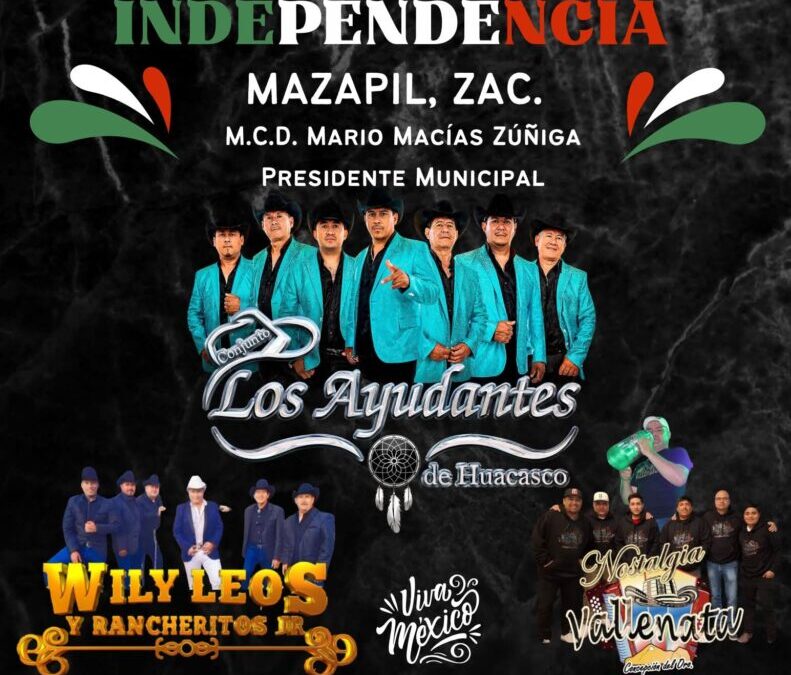 Después de mi #1erInformeDeGobierno, frente a la Presidencia Municipal los espero para la Gran Fiesta Mexicana con la música de Conjunto Los Ayudantes de Huacasco, Wily Leos, Nostalgia Vallenata.