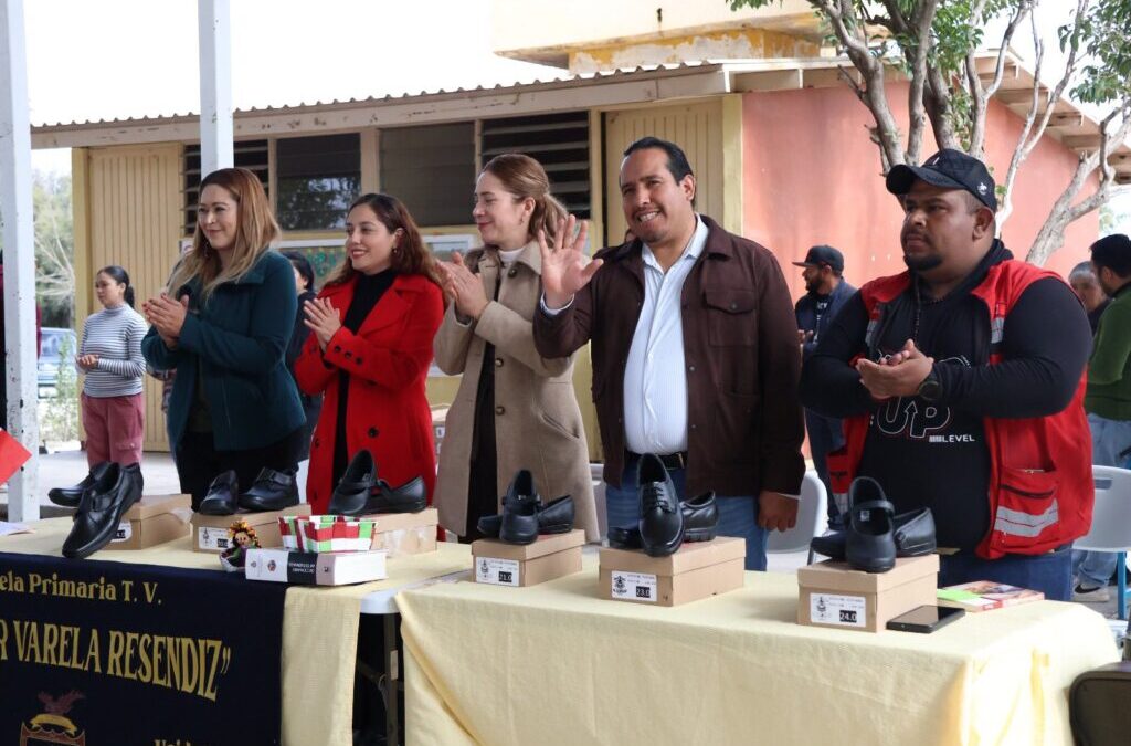 Calera, Zac.— Como parte de las acciones encaminadas a fortalecer la educación y apoyar la economía de las familias calerenses, el presidente municipal de Calera, Profe Miguel Murillo, realizó la entrega de zapatos escolares a alumnas y alumnos de nivel primaria de la comunidad de Ramón López Velarde, a través del programa “Pasos que Dejan Huella”.