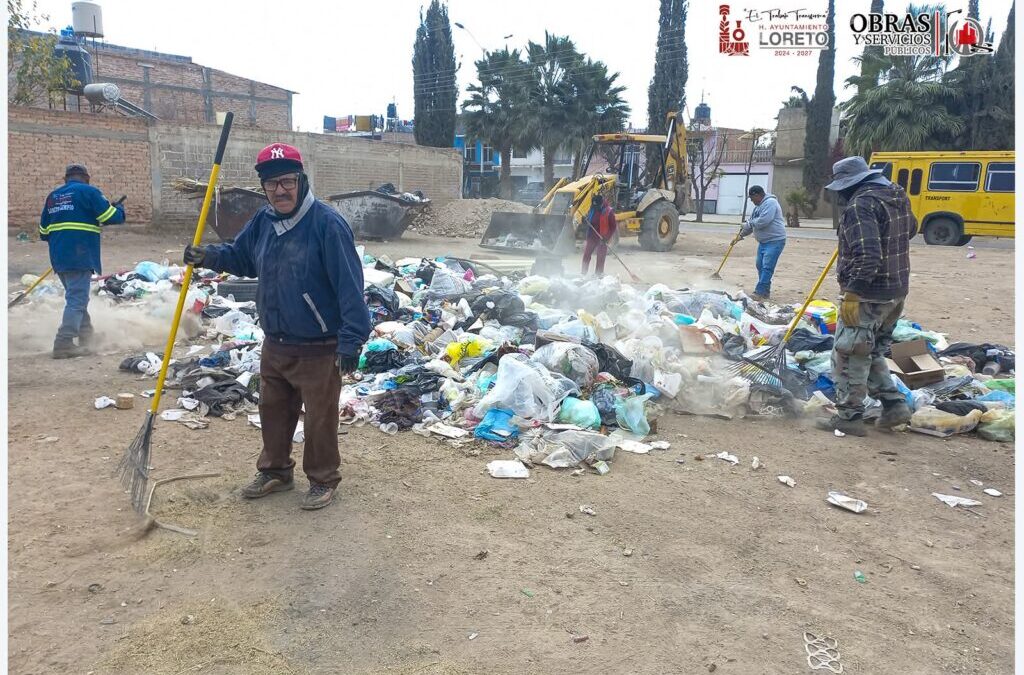 El H. Ayuntamiento 2024-2027 reafirma su compromiso con un Loreto más limpio y saludable. Por ello, en coordinación con la Dirección de Obras Públicas, se realizan diariamente las jornadas de limpieza en diferentes puntos de contenedores ubicados en diferentes calles de la cabecera municipal.