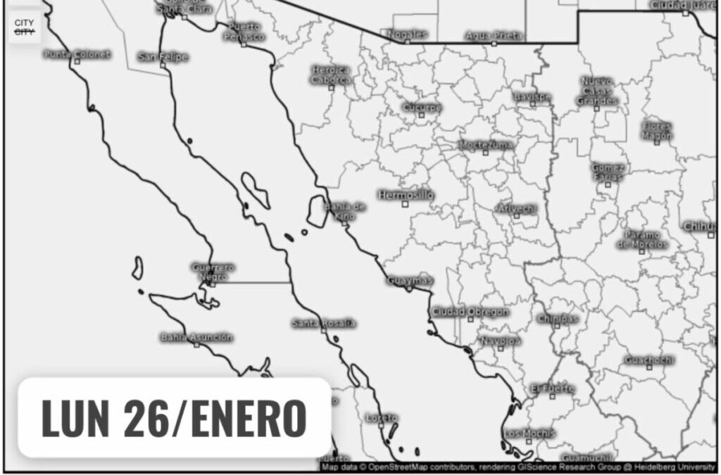 Hermosillo, Sonora; 26 de enero de 2026.- La Coordinación Estatal de Protección Civil (CEPC) en Sonora informa que se esperan condiciones meteorológicas que vayan tornándose más estables a lo largo de la semana sobre el estado.