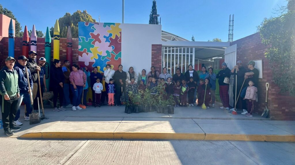 🟢 El Departamento de Desarrollo Urbano, Ecología y Medio Ambiente con el apoyo de Salud Pública, Juventud, Protección Civil, maestros, padres de familia y alumnos del grupo de 3ro. “A” a cargo de la docente Mariana Montealegre del Jardín de Niños #DelfinaCastorena realizaron una actividad de recolección de residuos y reforestación en el perímetro de la institución, con el objetivo de concientizar sobre el cuidado del medio ambiente y fomentar en los niños el hábito de depositar la basura en sus contenedores🌎♻️🌳