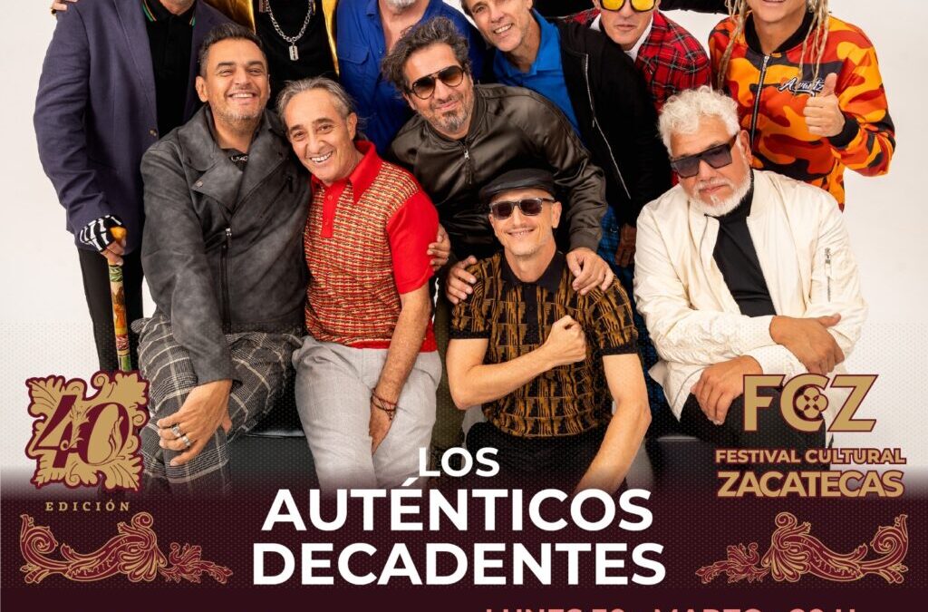 Tal como anticipó el mandatario estatal, que la edición número 40 del Festival Cultural en Zacatecas sería fabulosa y con grandes sorpresas, este miércoles lo refrendó con la confirmación de Los Auténticos Decadentes, que se presentará el lunes 30 de marzo de 2026 en la Plaza de Armas, uno de los escenarios más emblemáticos del evento.
