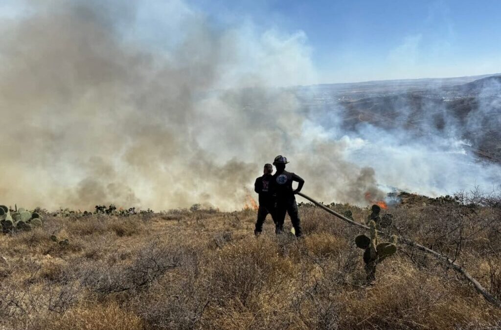 Elementos de Protección Civil Municipal de Zacatecas acudieron a atender un incendio registrado en dirección a Vetagrande, con el objetivo de contener su avance y evitar mayores afectaciones a la flora y fauna de la zona. Por instrucciones del presidente municipal, Miguel Varela, las brigadas capitalinas se sumaron de inmediato a las labores de combate del fuego.
