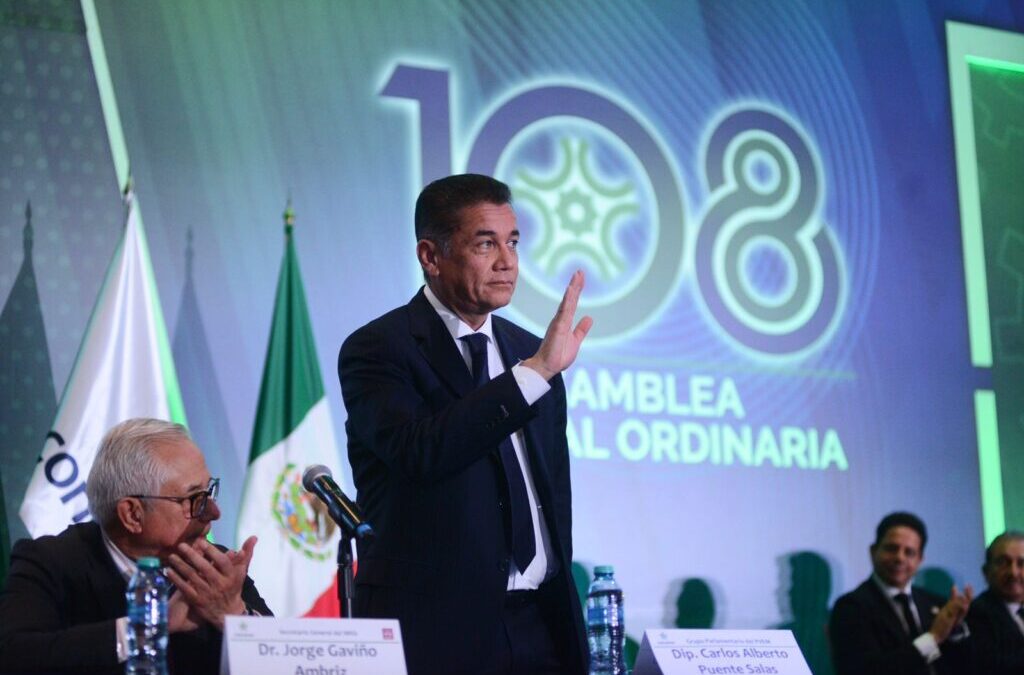 Carlos Puente habló con diversos industriales del país sobre las oportunidades que ofrece Zacatecas para que lleguen inversiones y se instalen industrias en el estado, en el marco del evento de la 108 Asamblea General Ordinaria de esta confederación.