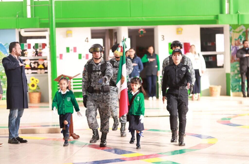 Zacatecas, Zac.- Como parte del programa “El Alcalde en tu escuela”, el Presidente Municipal de Zacatecas, Miguel Ángel Varela Pinedo, encabezó la ceremonia de honores a la bandera en el Jardín de Niños “Citlalli”, ubicado en la colonia Lomas de la Soledad donde se atendieron las necesidades de las instalaciones.