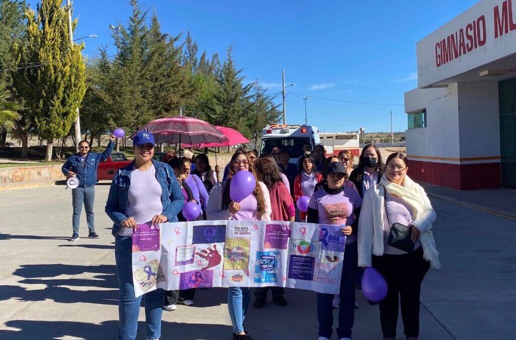 La movilización reunió a mujeres, personal de salud y ciudadanía en general, quienes recorrieron las principales calles del municipio portando distintivos en color morado, símbolo de la lucha por la igualdad de género y el reconocimiento de los derechos de las mujeres.