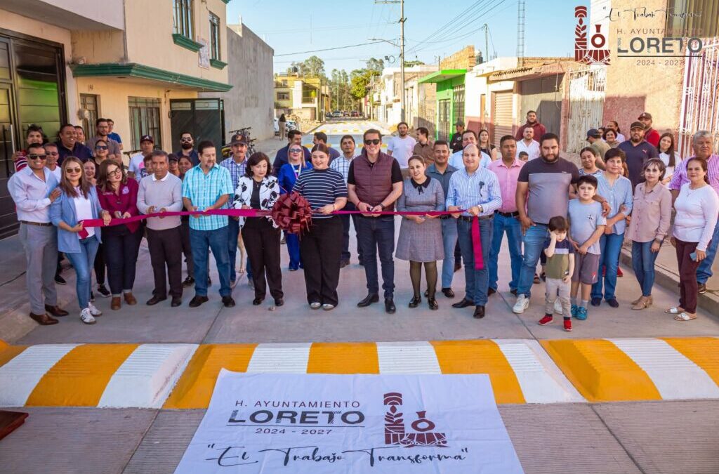 El H. Ayuntamiento de Loreto 2024–2027 llevó a cabo la inauguración de la calle Real de Minas, en la colonia Valle Real, encabezada por el Presidente Municipal, Arq. Antonio Tiscareño de Anda, acompañado por personal del Ayuntamiento y directores de la administración municipal.